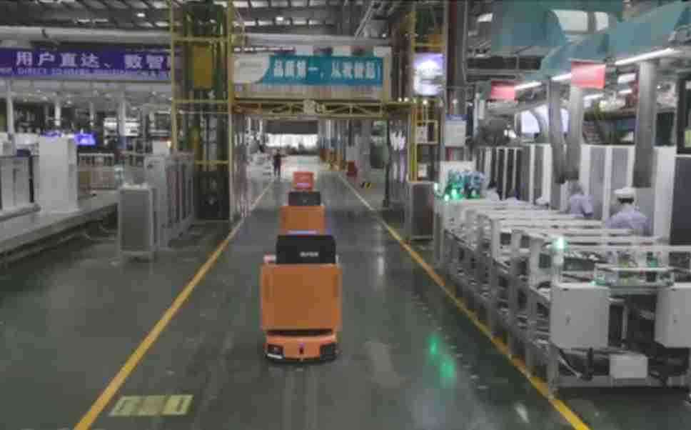 为车载冰箱物流配送打造的智能解决方案,,,,包含产中物流通过潜伏举升AMR搬运至线边,,,,产后成品物流智能仓储,,,流程包含产中物流智能齐套入库,,,,线边安灯叫料AMR智能配送至线边,,,,成品入库、、、出库,,,通过无人堆高车机器人,,智能仓储管理替代人工作业管理,,,实现更高存储、、、更高效率、、、更具柔性化的解决方案。。。